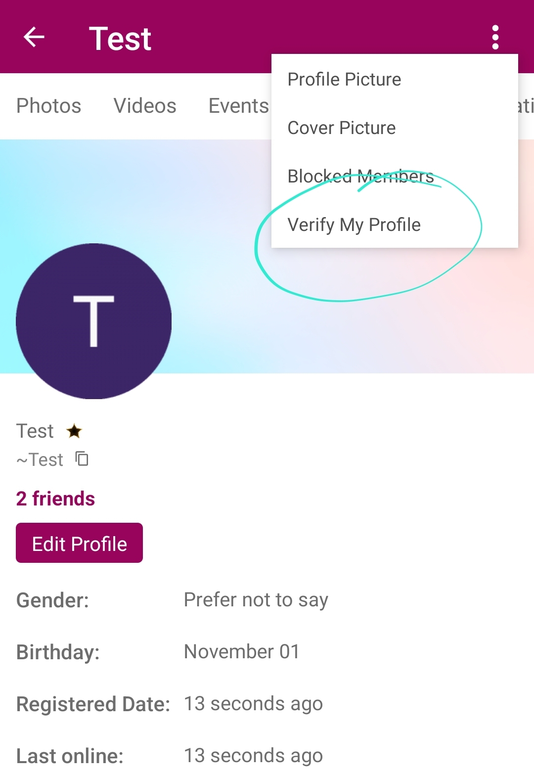 To verify your age, click on the "Verify my profile" button located next to your "Edit profile" button or on mobile under your profile avatar and details.
