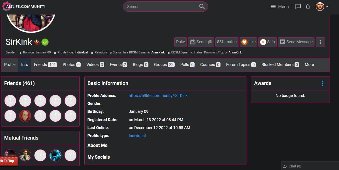 Clicking on Info takes you to the user's profile information, where you can find out when they were last online. Adorning the user's name, you may also find Badges - these mean different things and you can read up on user badges in our FAQs.